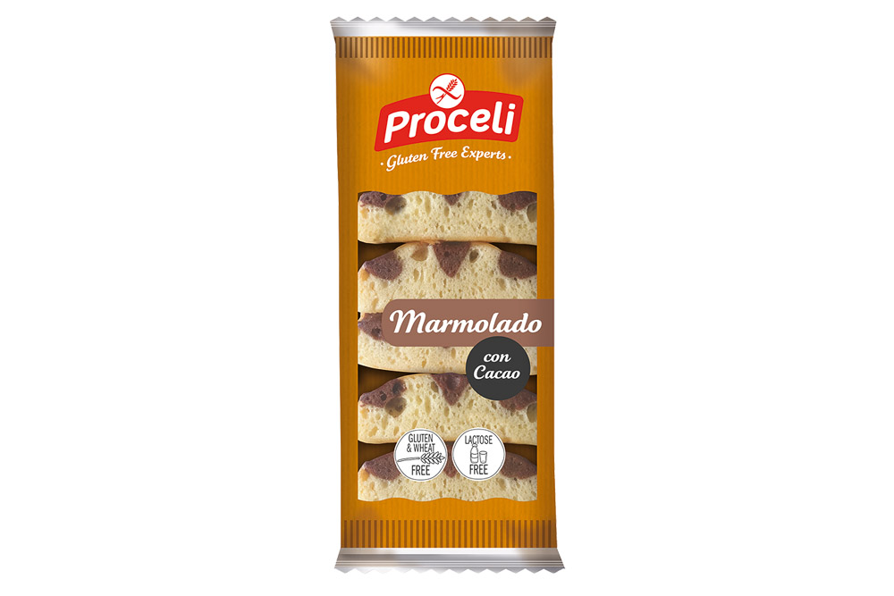 Azúcar, HUEVO, almidón de maíz, harina de arroz, aceite de girasol, agua, aceite de oliva virgen extra, cacao en polvo (0,9%) [cacao en polvo, regulador de la acidez: E501i], espesante: goma xantana, conservadores: E281, E202, emulgente: E472e, sal, gasificantes: E450, E500, aromas.