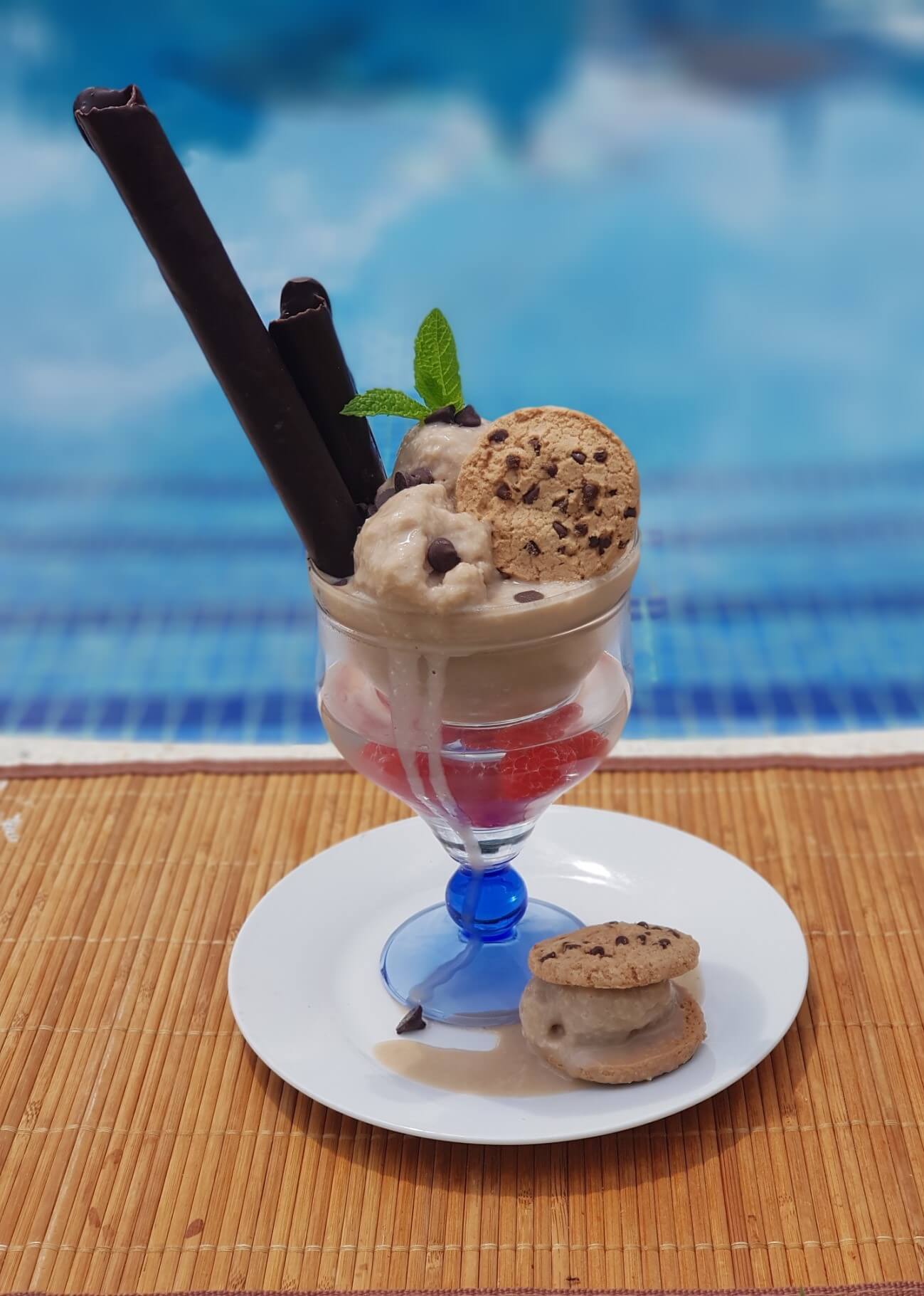 Formar bolas y servir decorado con tu topping favorito (triturar Barquillos al cacao Proceli o Chocochips Proceli).